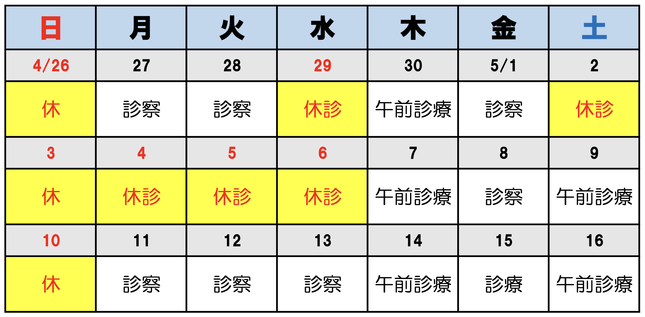 2026年 5月25日(月)は、院長が学会出席のため休診日となります。